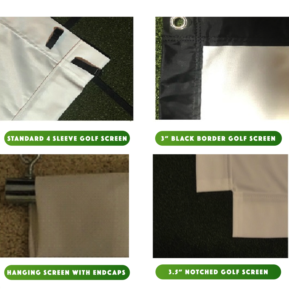 For smaller golf simulator setups, we offer a screen with triple-hemmed edges and double-sewn straps on all four sides. These golf screens include a 1-inch hem on all sides and come with 12 adjustable, 18-inch straps to suit your unique setup needs.